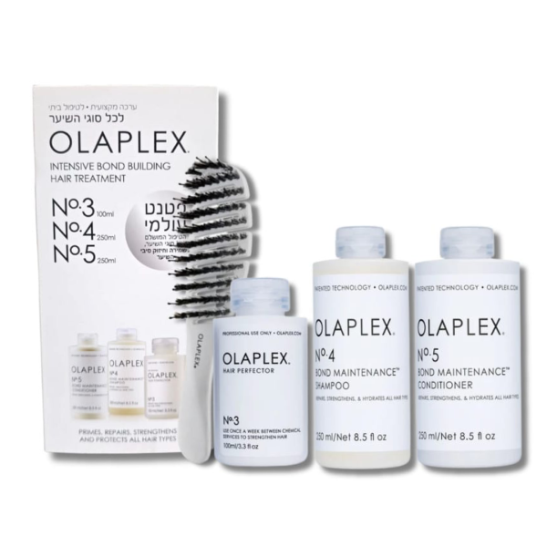 מארז Olaplex מקצועי מס׳ 3+5+4 + מברשת שיער מקצועית – אולפלקס