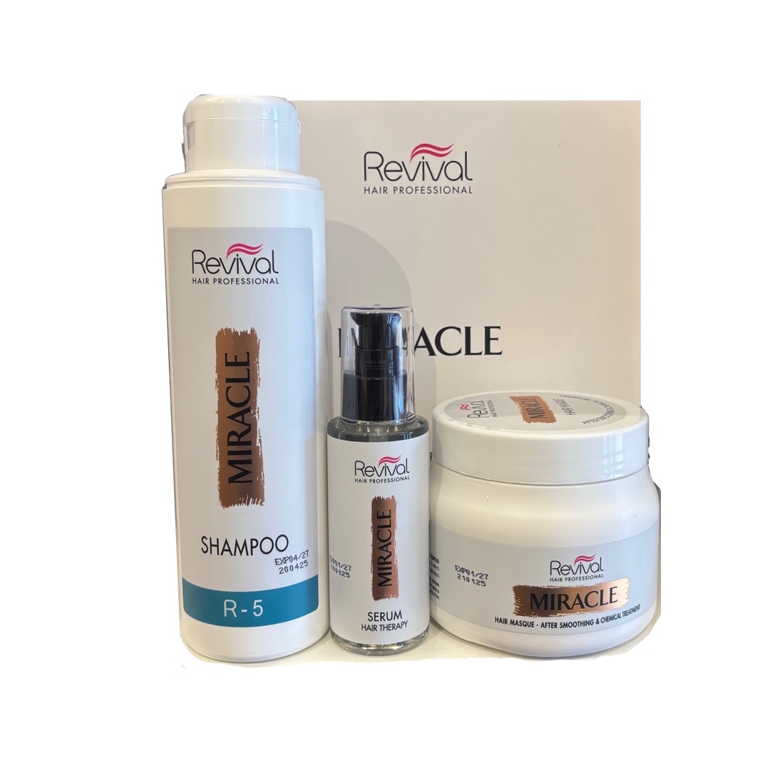 ערכת מירקל MIRACLE שמפו | מסכה | סרום REVIVAL רביבל
